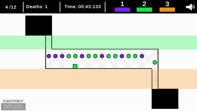 Flash inspired precision game where you change color to navigate challenging levels. This game also has a fully functioning online leaderboard with over 500 entries and 4 players with 0 death runs.