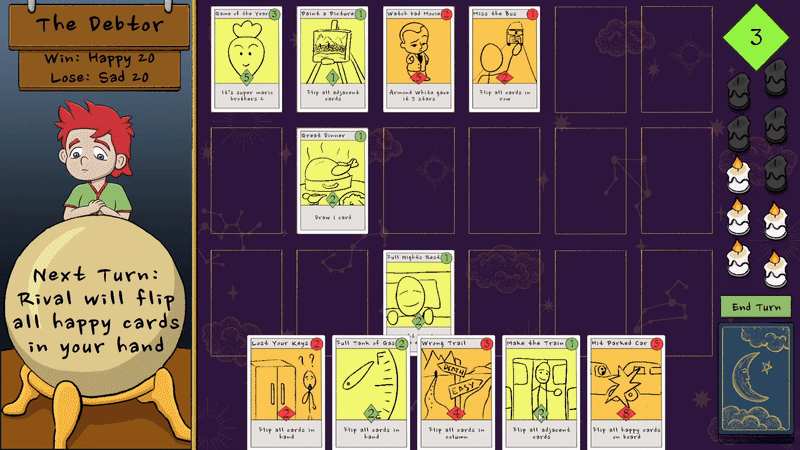 Strategic card game where you place cards to read the fortunes of others. Place cards to thwart your rival fortune teller and tell patrons their true destiny.