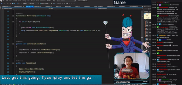 Twitch integrated minigame where Twitch viwers can play mini games to earn money and buy skins. Data saves from stream to stream.